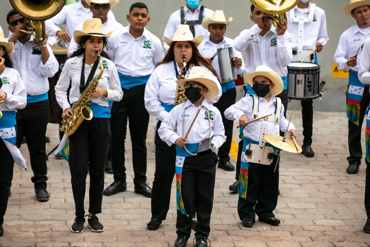 La mandataria escuchó y aplaudió a los artistas que entonaron cumbia y música del folclore hondureño, demostrando sus destrezas en el manejo de sus instrumentos en la dirección de su director, Mario Medina.