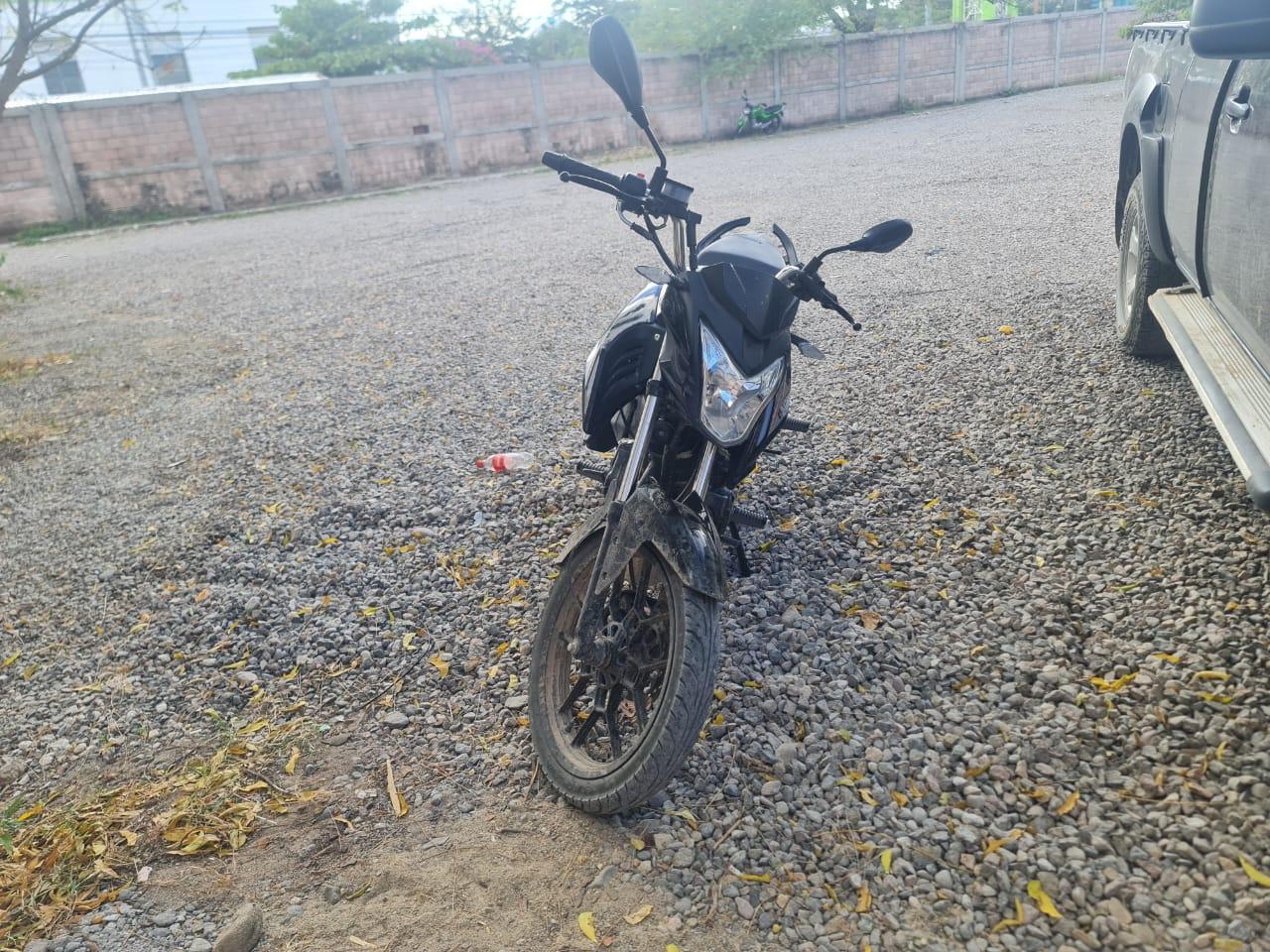 -Un vehiculo tipo motocicleta color negros marca Genesis.