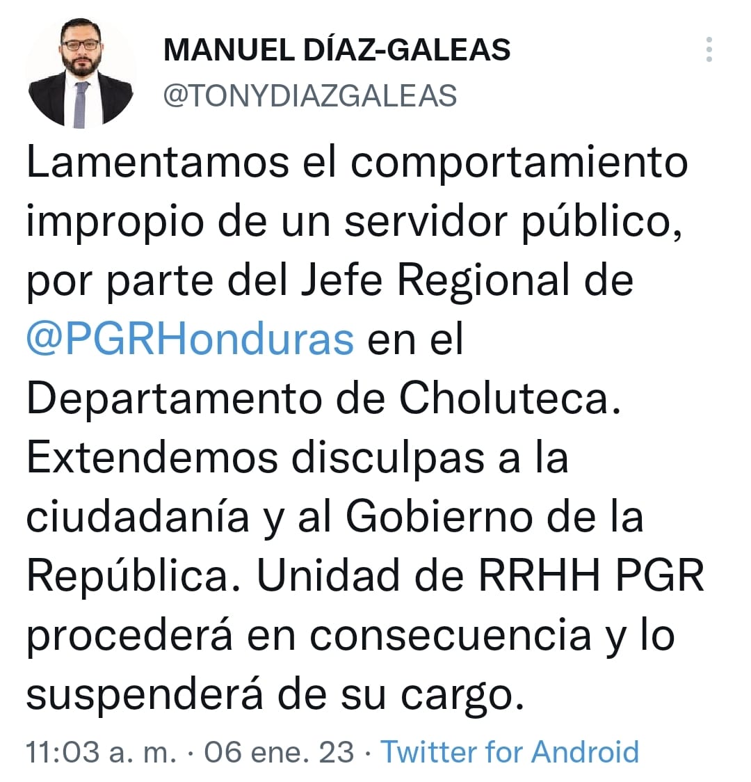 Este día el Procurador General de la República Abog. Manuel Díaz informo de la separación del funcionario de la oficina Regional Sur de la PGR.