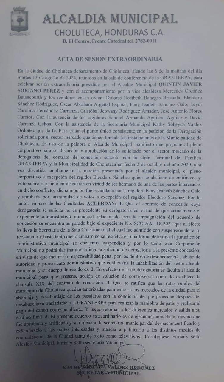 ¿Quintín Soriano al borde de la Cárcel? Corporación municipal de Choluteca tiene un sustento legal sobre GRAN TERMINAL DEL PACÍFICO