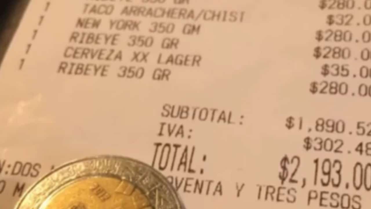 Trascendió que al lugar asistió un grupo de personas, que, como podemos apreciar por la foto, consumieron cerveza, diversos tipo de corte de carne, tacos y un burrito. Esto sumo para que el total de la cuenta fuera de dos mil 193 pesos.