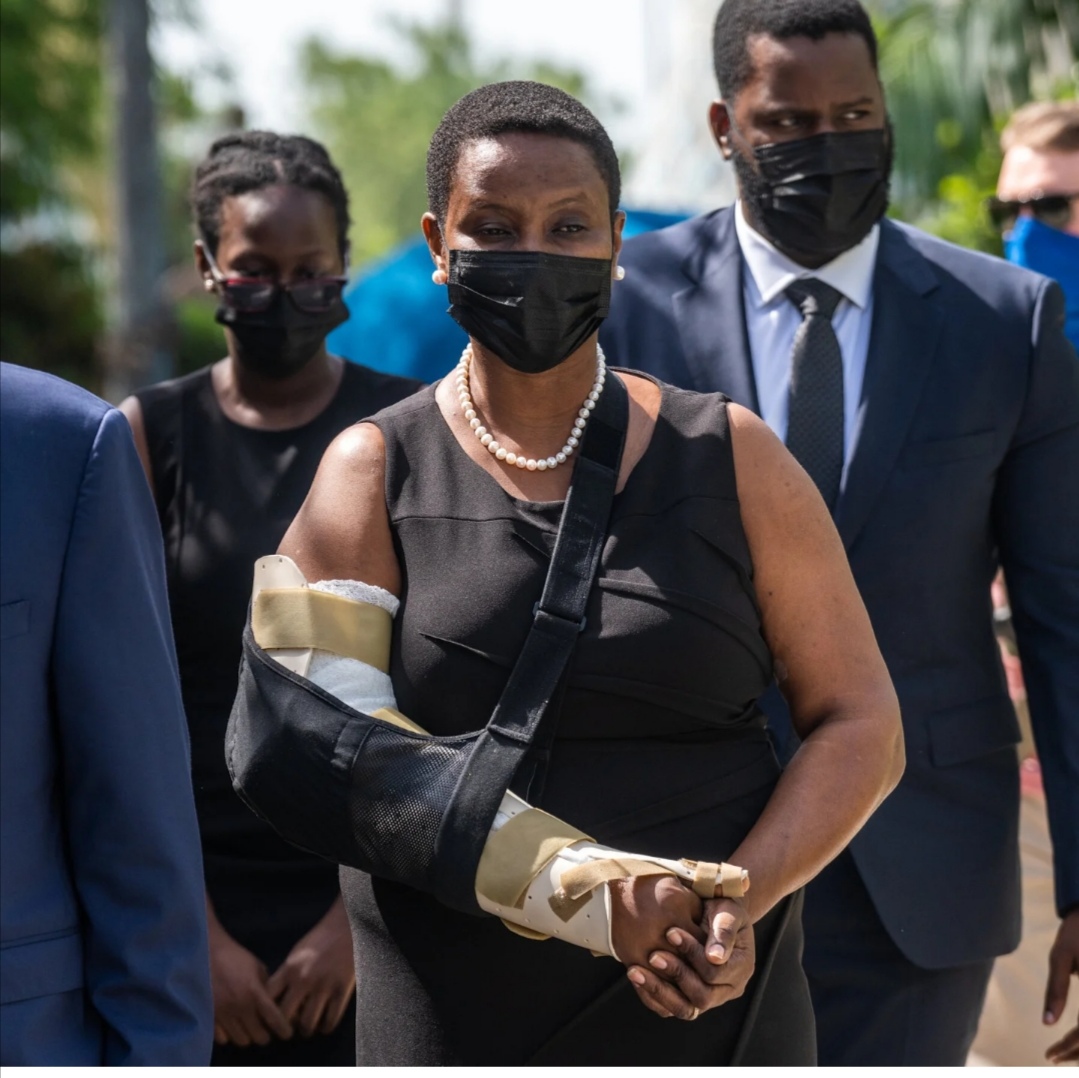 Martine, quien resultó herida en el ataque a su esposo, llegó, de riguroso negro, en medio de un dispositivo de seguridad a la ceremonia a la que también asisten sus hijos, el primer ministro, Ariel Henry, y funcionarios del Gobierno.