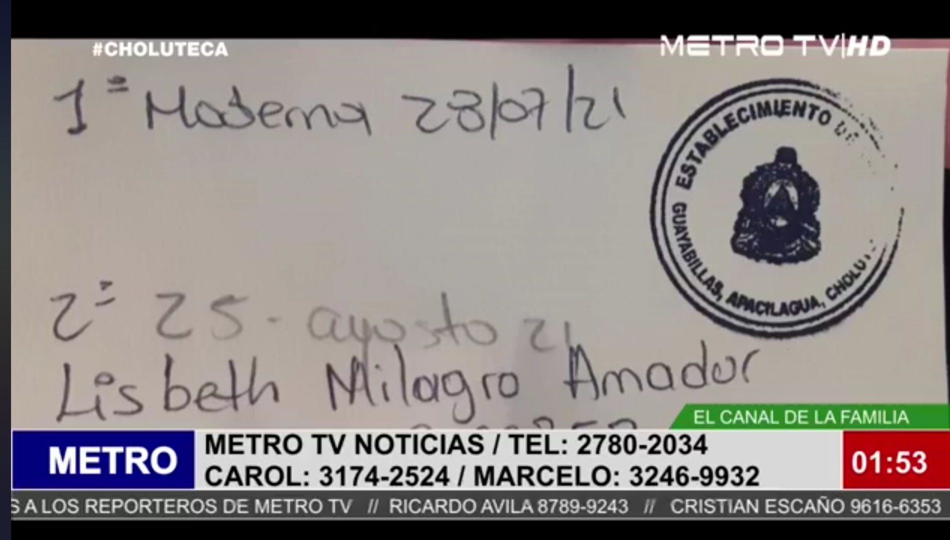 La información de los inoculados, está siendo escrita en un papel de apuntes, como si se tratara de un recordatorio que se tiene que pegar en el refrigerador y poco profesional