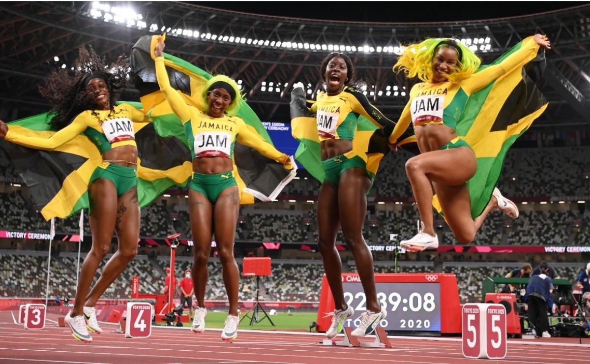 El cuarteto de Jamaica de Thompson-Herah, Shelly-Ann Fraser Pryce, Shericka Jackson y Briana Williams registró un tiempo de 41,02 segundos.