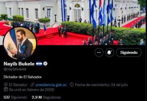 “Dictador de El Salvador”: Nayib Bukele escribe en su biografía de Twitter