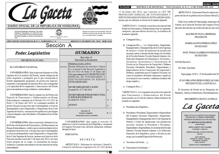La Ley de Protección Especial de Funcionarios y Exfuncionarios en Riesgo Extraordinario creada en el 2014, tiene como objeto establecer un marco jurídico que regula la implementación de medidas de protección para las personas naturales que presten o hayan prestado sus servicios al Estado y que como consecuencia directa de decisiones y actuaciones inherentes a su cargo, estén expuestos a riesgos y amenazas contra su integridad o la de su núcleo.
