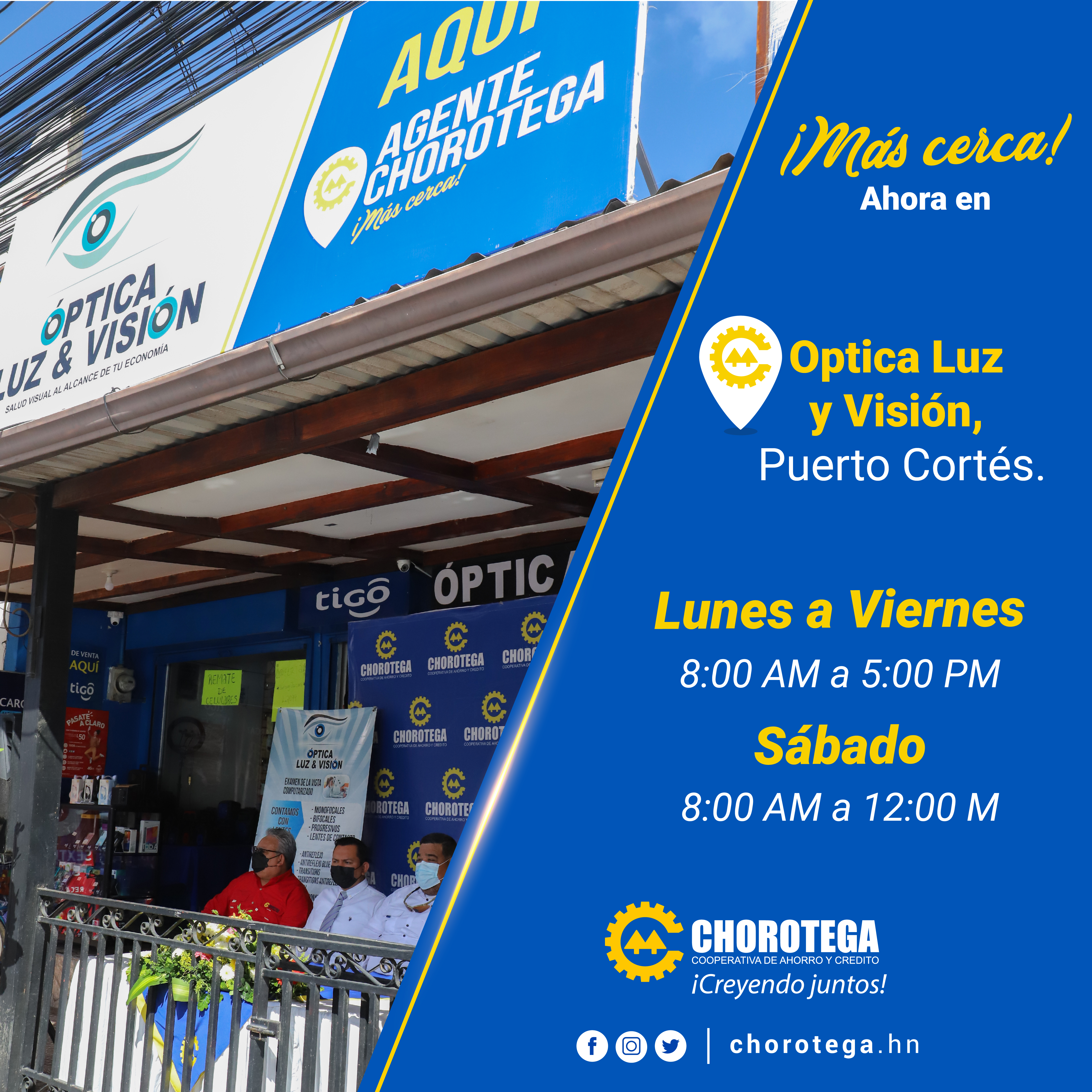 Cooperativa Chorotega sigue creciendo con su Red de Agentes y llega al principal punto de embarque de Honduras a través de su red de Agentes Chorotega a nivel nacional, inauguró su agente número #8, en la Óptica Luz y Visión en Puerto Cortés.