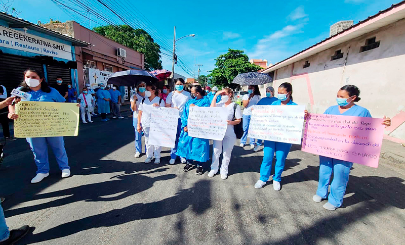 Por cuarto día consecutivo el personal sanitario del Hospital Leonardo Martínez y del Hospital Escuela realizan una protesta en la que exigen les paguen tres meses de salario y la asignación de plazas.