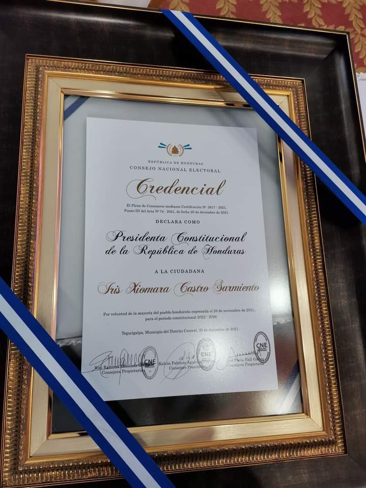 Xiomara recibe credencial que la acredita como la presidenta electa de Honduras
